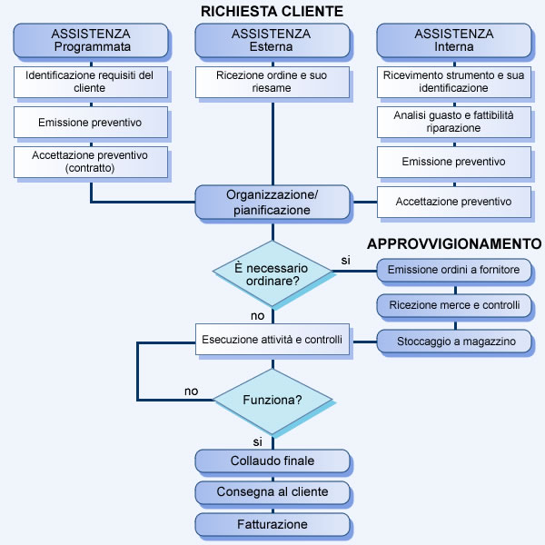 Tutti gli strumenti riparati, prima di essere inviati al cliente, devono sottostare, e superare positivamente, tutta una serie di controlli e/o collaudi finali; a richiesta viene rilasciata copia dei tests report eseguiti così come dei verbali di riparazione interni.